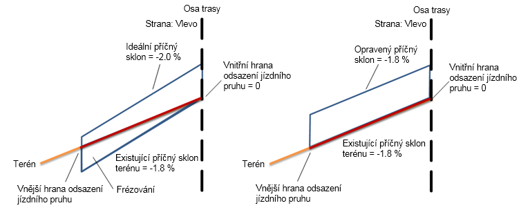 | Opravený příčný sklon | Opravený příčný sklon bude mít hodnotu -1.8 %. |