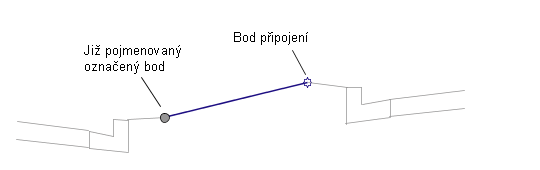 Bod připojení je na začátku spojnice. Spojnice může vést kterýmkoliv směrem. Směr je dán umístěním označeného bodu ve vztahu k bodu připojení.