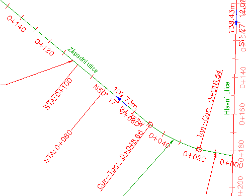 Změněný styl popisku hlavního staničení: pouze STA: 0+060