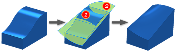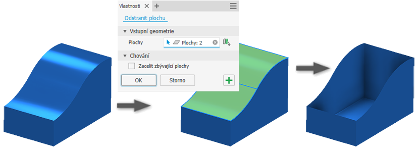 Umožňuje nahradit jednu nebo více ploch součásti plochou objemového tělesa, povrchem, sešitím nebo jednou či více pracovními rovinami.