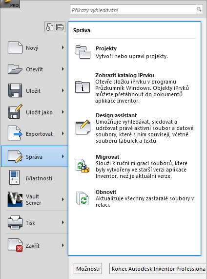 - Otevřete soubor, který byl vytvořen ve starší verzi aplikace Autodesk Inventor.