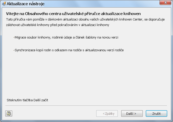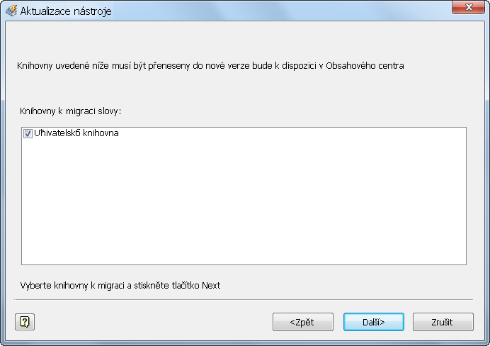 Krok 3: V dialogu nástroje Aktualizovat kliknutím na tlačítko Další projděte procesem, který dokončí migraci uživatelských knihoven.