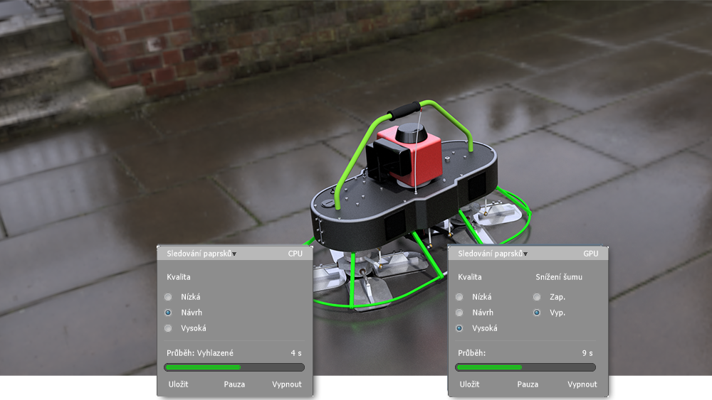 Mezi rendrováním pomocí CPU a GPU můžete přepínat pomocí popsané možnosti.