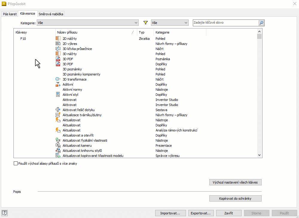 Další informace naleznete v části Práce s uživatelskými aliasy a klávesovými zkratkami příkazů.