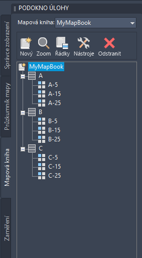 Pro každou dlaždici mapové knihy je vytvořena jedna karta rozvržení.