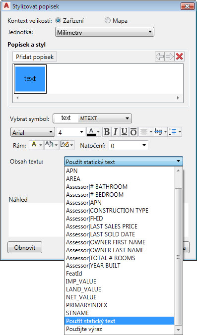 Každou parcelu můžete opatřit popiskem s textem, který je určen výrazem. V tomto cvičení vytvoříte popisek pro každou parcelu, který zobrazí adresu parcely ve dvou řádcích.