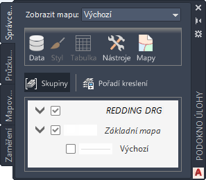 Ve Správci zobrazení je nyní položka REDDING_DRG uvedena jako hladina.