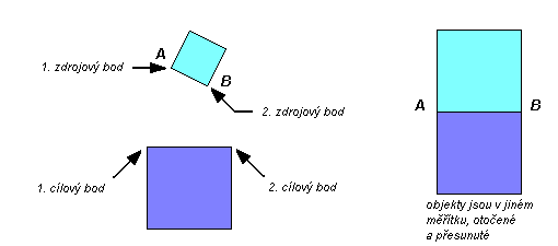 Poměr délky mezi dvěma cílovými body k délce mezi dvěma zdrojovými body je změna v měřítku.