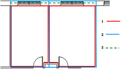 Při generování energetického analytického modelu z architektonického modelu existuje několik způsobů umístění a měření prostorů a povrchů. Následující obrázek například znázorňuje, jak některé nástroje pro vytváření modelu definují plochy prostoru, objemy a hranice povrchů různými způsoby, čímž vznikne poněkud odlišná sada měření a souřadnic.