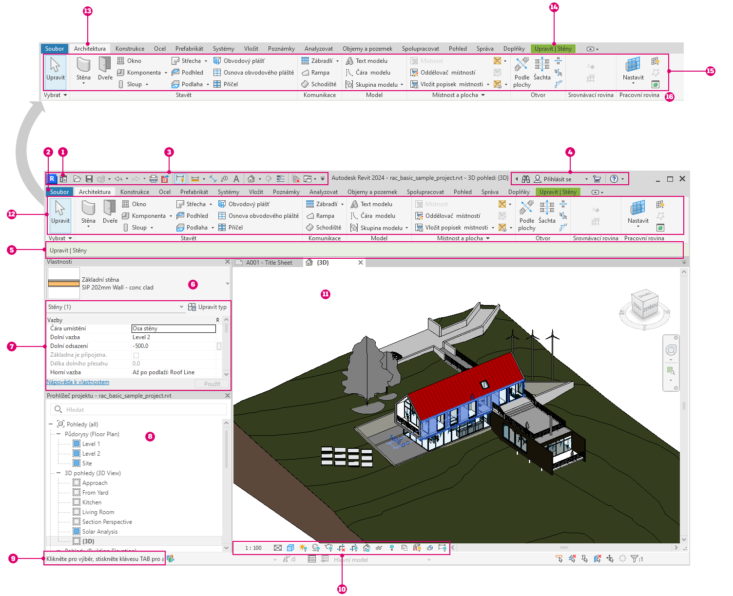 | 14 | Kontextová karta na pásu karet, která poskytuje nástroje, které jsou relevantní pro vybraný objekt nebo aktuální akci |