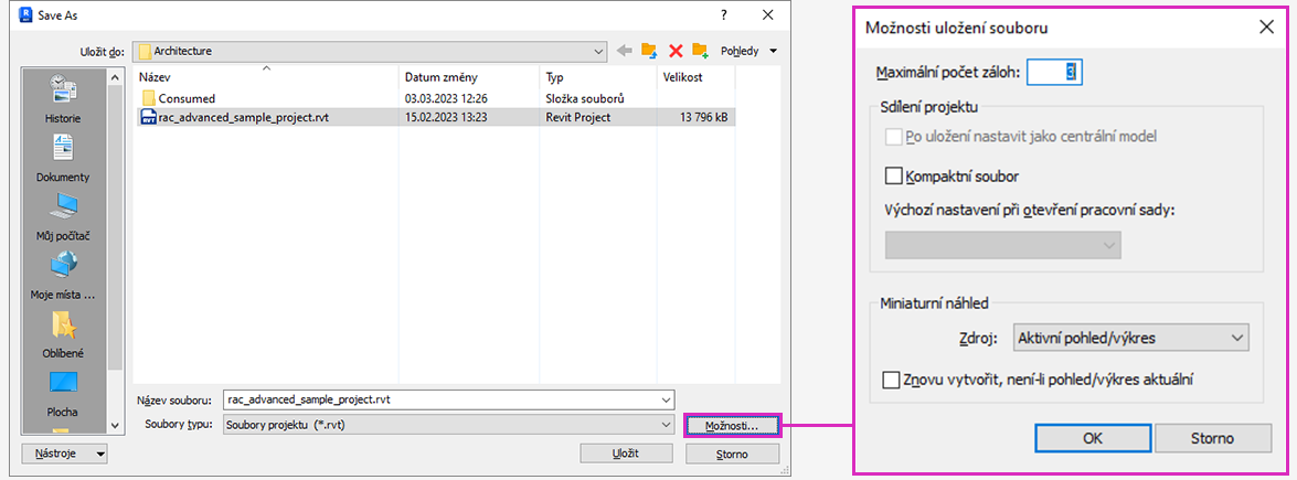 - V dialogu Uložit jako klikněte na tlačítko Možnosti.