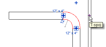 Chcete-li změnit spoj T zpět na koleno, klikněte na symbol mínus (-) vedle tvarovky.
