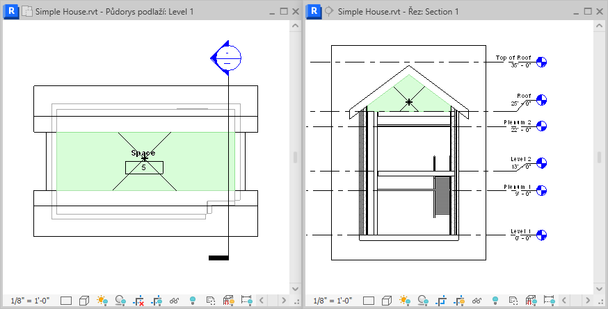 - Opakováním postupu nastavíte prostory jako viditelné v půdorysném pohledu podlaží.