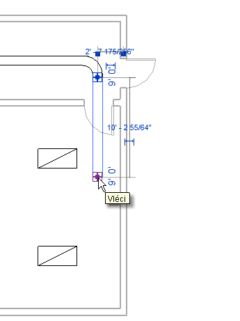 - Přetažením ovládacího prvku přesuňte nebo prodlužte segment kabelové lávky do nového koncového bodu nebo ho připojte k jiné kabelové lávce.