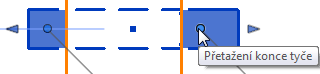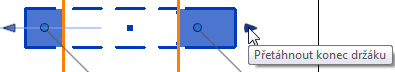 Přetažením ovládacího prvku konce držáku můžete nastavit délku držáku měřenou od tyče. Stisknutím klávesy Shift při přetahování ovládacího prvku zavazbíte směr pohybu.
