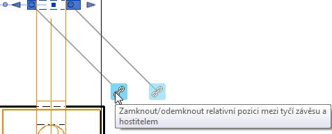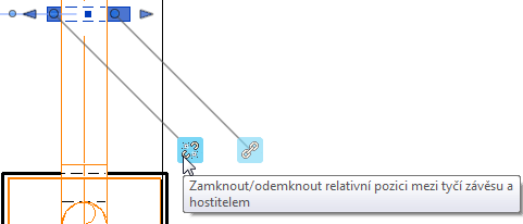 Polohu držáku vybraného závěsu výroby můžete měnit pomocí ovládacích prvků na kreslicí ploše.