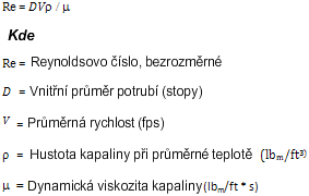 | Reynoldsovo číslo | Tato hodnota se vypočítá pomocí následujícího vzorce: