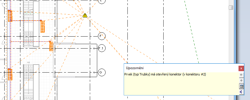 Chcete-li ověřit připojení potrubních systémů v modelu, klikněte na kartu Analyzovat