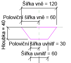 • Polovina vnitřní šířky: vnitřní šířka / 2