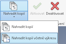 Příkaz Nahradit kopií a Nahradit kopií včetně výkresu