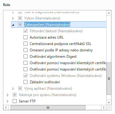 - V části Role serveru vyberte následující role: