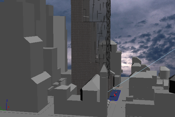 Modell einer Stadtlandschaft mit Bild einer Himmelansicht, das als Ansichtsfenster-Hintergrund verwendet wird