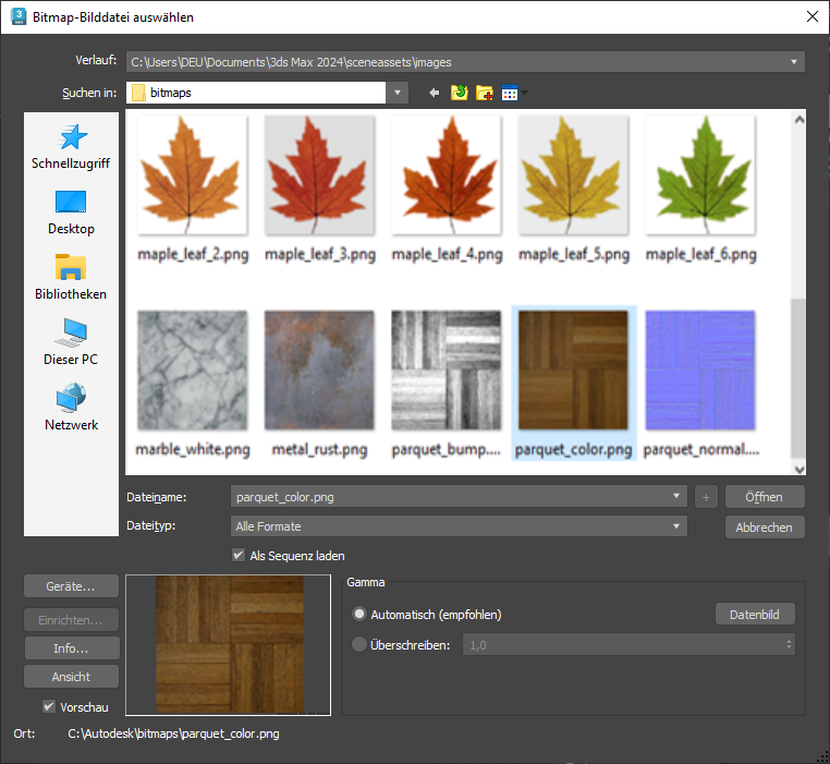 3ds Max öffnet das Dialogfeld "Bitmap-Bild auswählen".