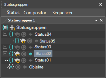 Das Grundstatuselement, "Statusgruppen", ist ein Stammknoten, der alle Statusgruppen enthält. Sie können es verwenden, um globale Vorgänge durchzuführen, wie z. B. das gleichzeitige Rendern aller Status (klicken Sie mit der rechten Maustaste auf Statusgruppen