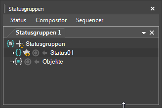 Das Dialogfeld Statusgruppen enthält die drei Hauptmenüs Status, Composer und Sequencer sowie die entsprechenden Gruppen. Jede Gruppe enthält außerdem eine Reihe von Kontextmenüs, deren Inhalte vom Kontext abhängen.