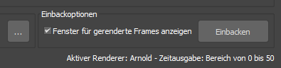 Der aktive Renderer und der Zeitausgabebereich werden unten rechts im Fenster „Als Textur einbacken“ angezeigt.