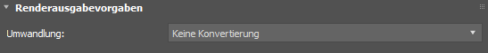 - Keine Konvertierung: Speichert die nicht transformierten Werte des Renderbereichs. Dies ist die beste Wahl, wenn die Bilder weiter verarbeitet werden sollen, da der gesamte dynamische Bereich für Operationen wie Zusammensetzen und Gradieren zur Verfügung steht.