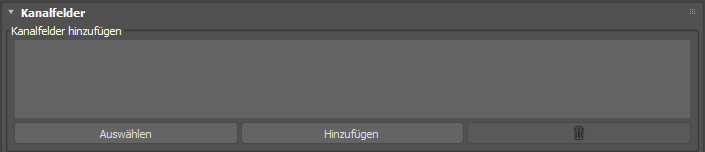 - Klicken Sie auf Auswählen, um Objekte in der Szene auszuwählen, die als Kanalfeld hinzugefügt werden sollen, oder klicken Sie auf Hinzufügen, um ein Kanalfeld in einem Dialogfeld auszuwählen. Klicken Sie auf Löschen, um ein ausgewähltes Kanalfeld zu löschen.