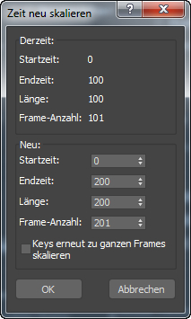 - Stellen Sie im Dialogfeld "Zeit neu skalieren" den Wert für "Endzeit" auf 200 ein, und klicken Sie anschließend auf "OK".
