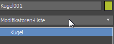 - Doppelklicken Sie in der Modifikatorgruppe im Feld "Objektname" den Namen Sphere001, um ihn zu markieren.