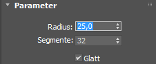Rollout "Parameter" den Wert im Feld "Radius" auf 25, und drücken Sie anschließend die Eingabetaste.