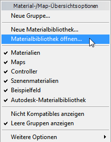 In der Material-/Map-Übersicht wird jetzt ein Bereich für die Bibliothek angezeigt.
