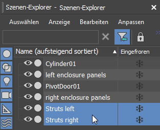 Im Ansichtsfenster ändert sich die Darstellung der Glaspaneelen des linken Gehäuses.
