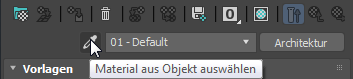 Die Materialien im Material-Editor sind standardmäßig vom Architekturtyp. Im nächsten Schritt ändern Sie dieses Material in den Typ "Standard".
