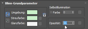 "Blinn", benannt nach James Blinn, dem Pionier im Bereich Computergrafik, ist der vom Standardmaterial vorgabemäßig verwendete Shadertyp. Ein Shader bestimmt, wie das Material mit Licht interagiert. "Streulicht" bezieht sich auf die Farbe des Grundmaterials. Sie finden weitere Informationen über Shader und Materialien in der 3ds Max-Hilfe.