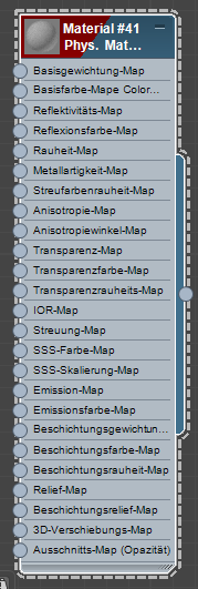 Dies ist der Material-Editor, in dem Sie neue Materialien erstellen und den Objekten in Ihrer Szene zuweisen können.