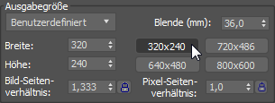 - Ändern Sie im Bereich "Ausgabegröße" den Vorgabewert (640 x 480) auf 320 x 240.