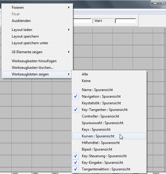Modifikatorgruppe den animierten Parameter für "Öffnen" (womit der Türöffnungswinkel festgelegt wird) und klicken Sie mit der rechten Maustaste in das numerische Feld. Wählen Sie im Quad-Menü die Option "In Spuransicht zeigen".