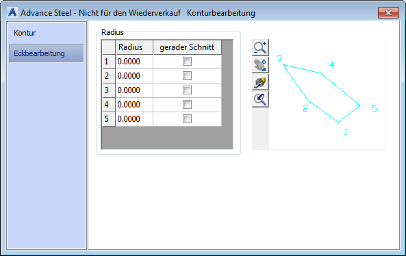 | Radius | Definiert den Radius der Eckbearbeitung. |