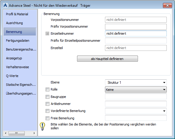 | Hauptteilnummer | Definiert die dem Element zugewiesene Hauptteilnummer. |