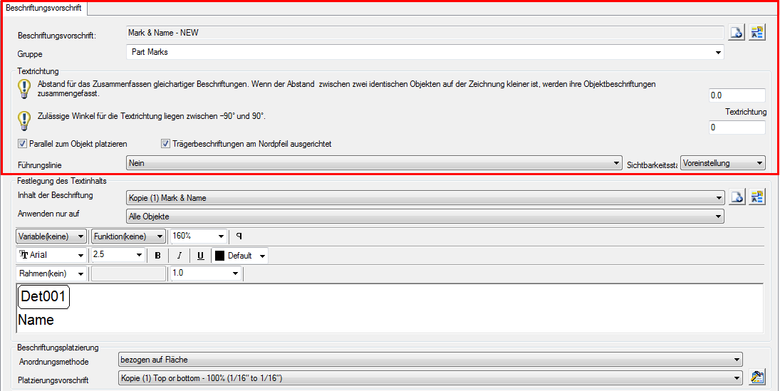 Zum Konfigurieren der Objektdarstellungsregeln für den Zeichnungsstil müssen Sie aus den vordefinierten Beschriftungsvorschriften wählen. Wenn Sie eine neue benutzerdefinierte Beschriftungsvorschrift benötigen, müssen Sie eine erstellen.