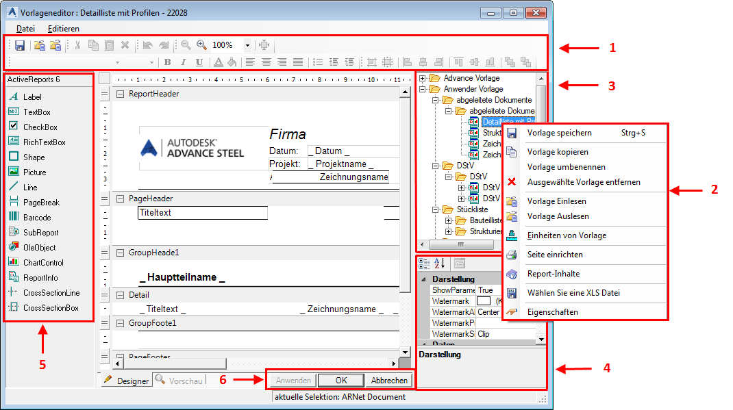 Enthält Kopien aller Stücklistenvorlagen aus Advance. Ihre Eigenschaften können geändert werden. |