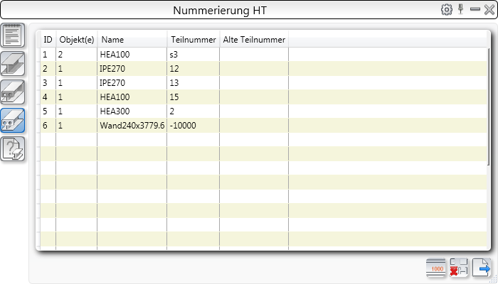 Zeigt die Liste der Elemente und deren Positionsnummern für das gesamte Modell oder einen Auswahlsatz an. Die Objekte werden mit fortlaufenden Indexnummern positioniert.