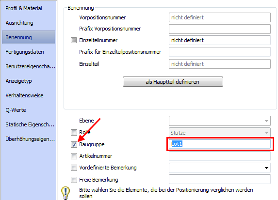 Die Positionierungsmethoden werden verwendet, um die Teilenummern zu steuern, die automatisch den Elementen des Models zugewiesen werden.