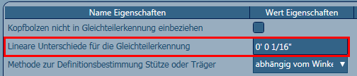 - Bestimmte allgemeine Größen werden zuerst verglichen, wie zum Beispiel die Dicke des Blechs oder der Profiltyp des Trägers. So werden beispielsweise zwei geometrisch identische Stahlträger, die jedoch unterschiedliche Namen haben, nicht als identisch betrachtet.