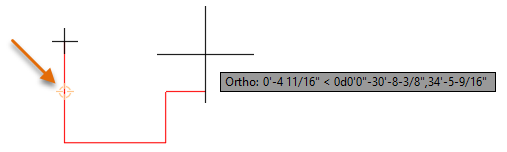 Verwenden eines zuletzt verwendeten Werts – Drücken Sie die Nach-oben- und Nach-unten-Pfeiltasten, während ein Befehl aktiv ist, um vorwärts oder rückwärts durch die Werte zu blättern, die zuletzt für dieselbe oder ähnliche Eingabeaufforderungen verwendet wurden. Wenn Sie durch die Koordinatenwerte blättern, wird in der Zeichnung ein Zeichen angezeigt, das auf den Koordinatenpunkt in der Zeichnung hinweist.
